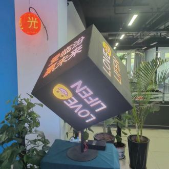The full-sided magic cube LED display, also known as the 6-sided cube LED display, allows each face to be clearly seen. It can be mounted on a base, and we also offer an optional electric rotation feature, enabling the cube LED display to rotate automatically, adding a sense of technology and leaving a deep impression on passersby, serving as an effective promotional tool.